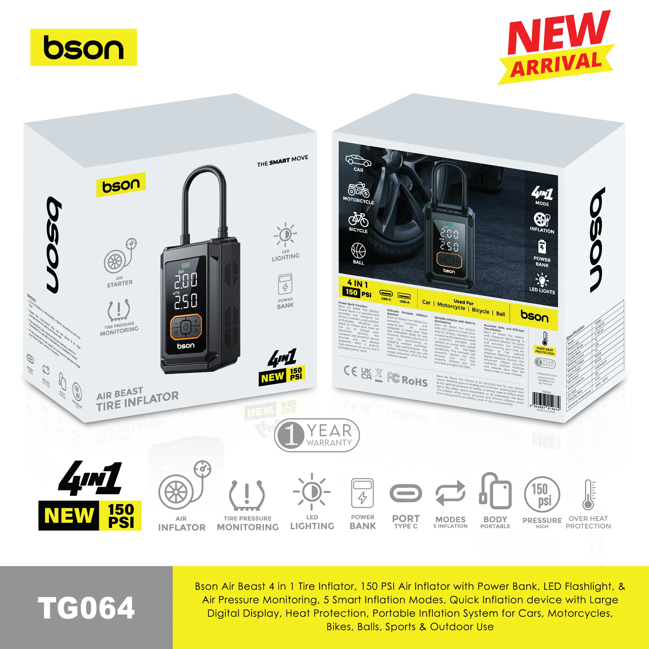 FORCE USA 4-IN-1 Jump Starter with Inflation, 12000mAh Battery, 150PSI Air Compressor, 100W Power, 12V 1000A Peak Current