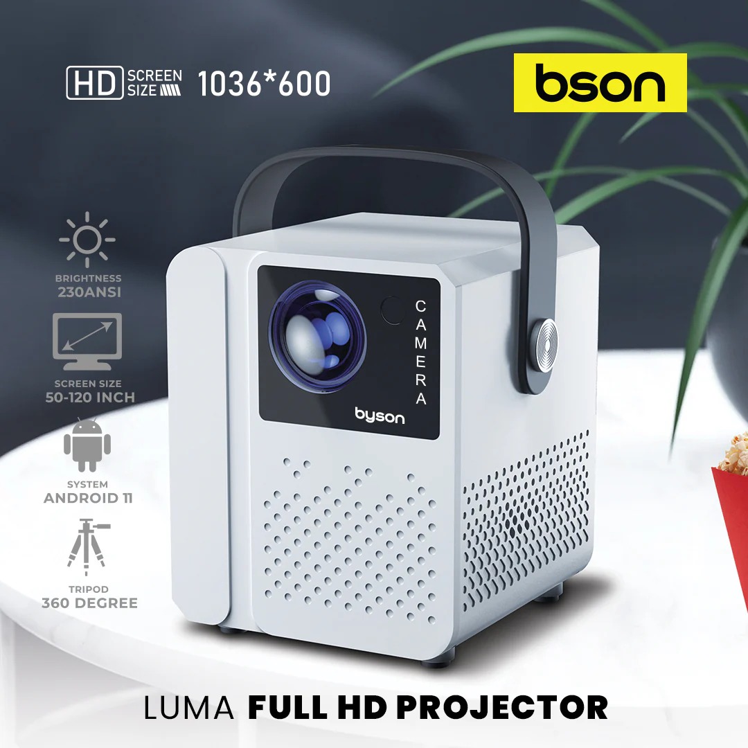 Byson Luma Full HD Projector, Android 11 System, with 5G WiFi, 50-120 Inch Display, with Remote Control & 360° Tripod, Full HDR Resolution for Home, Office, Theater & Outdoor Use