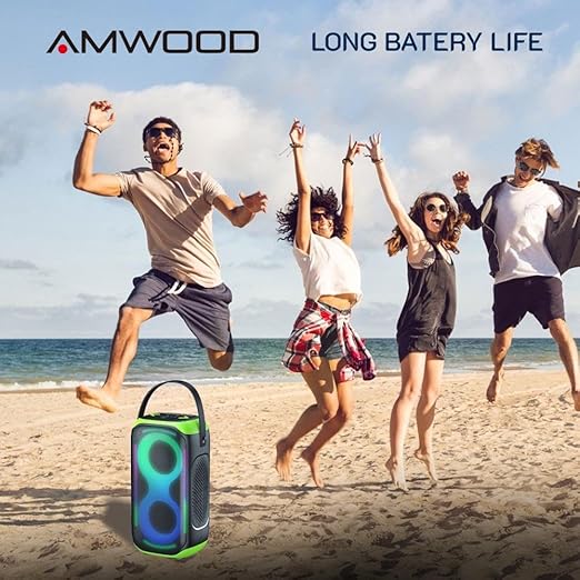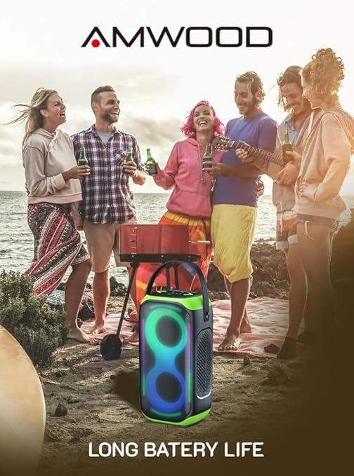 The built-in LED lights sync with your music, creating a lively and energetic vibe. Ideal for parties, celebrations, or even relaxed evenings at home.