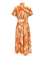 Floral Print Button Front Dress, Casual Short Sleeve Collared Dress, Women’s Clothing – Orange