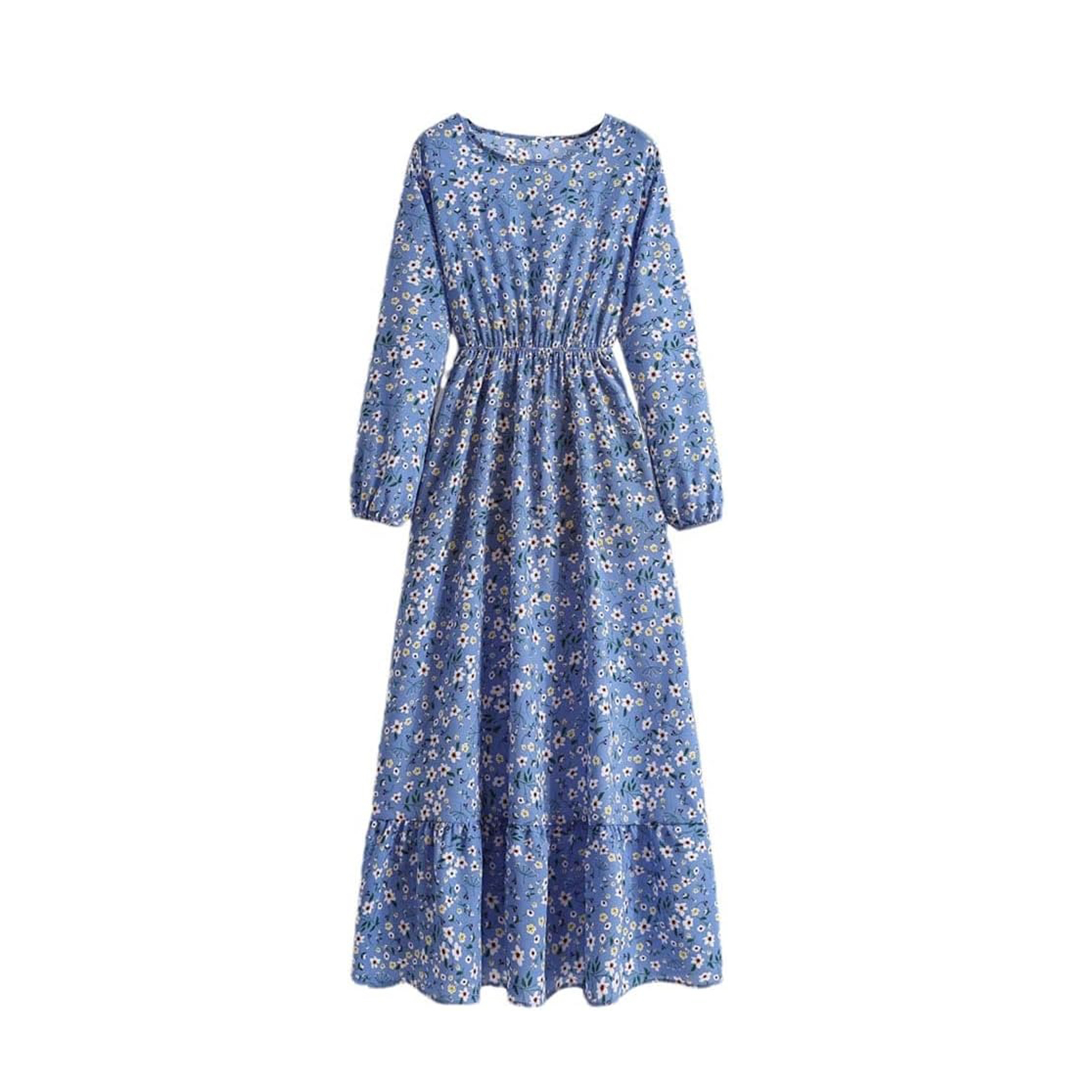 Women’s Spring Summer Floral Print Dress Round Neck Long Sleeve Maxi Party Dresses