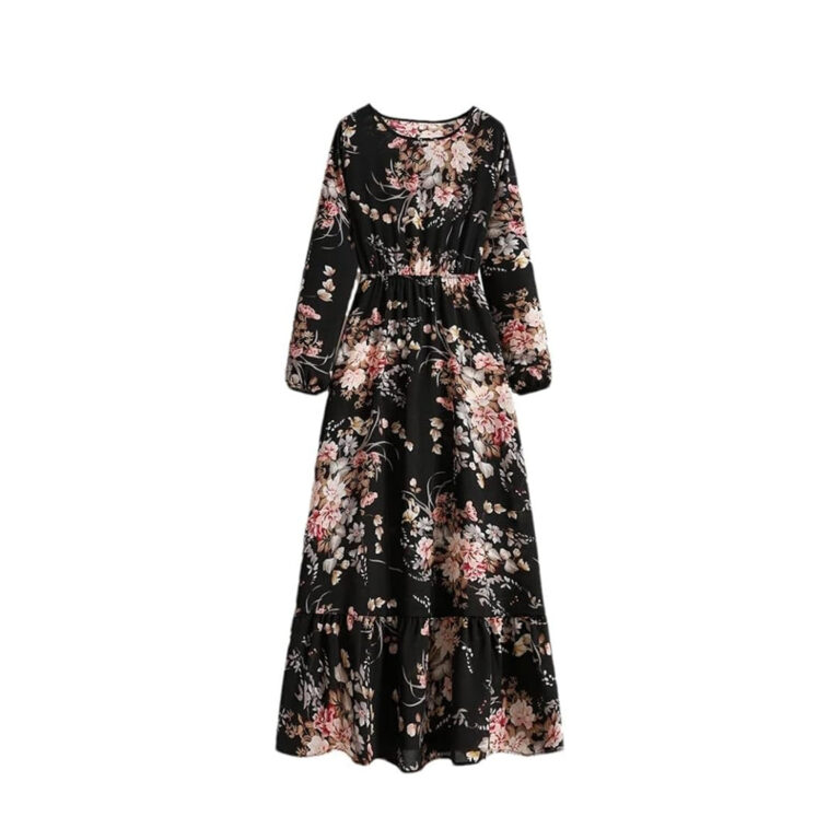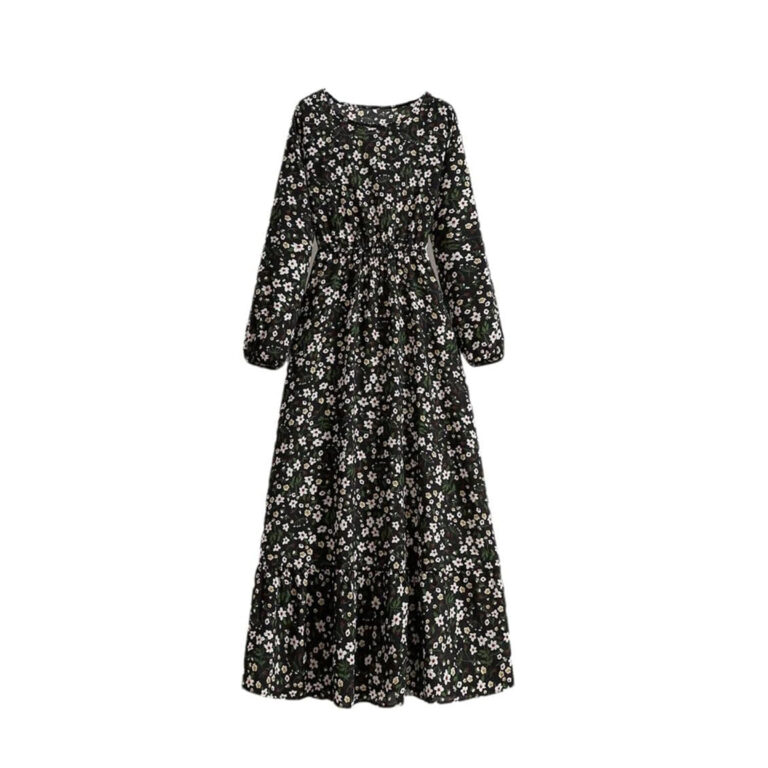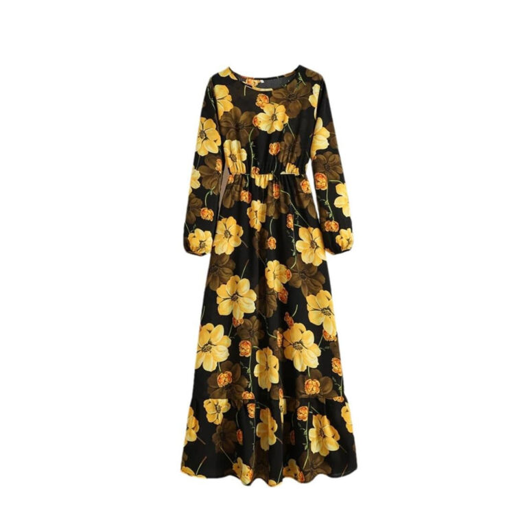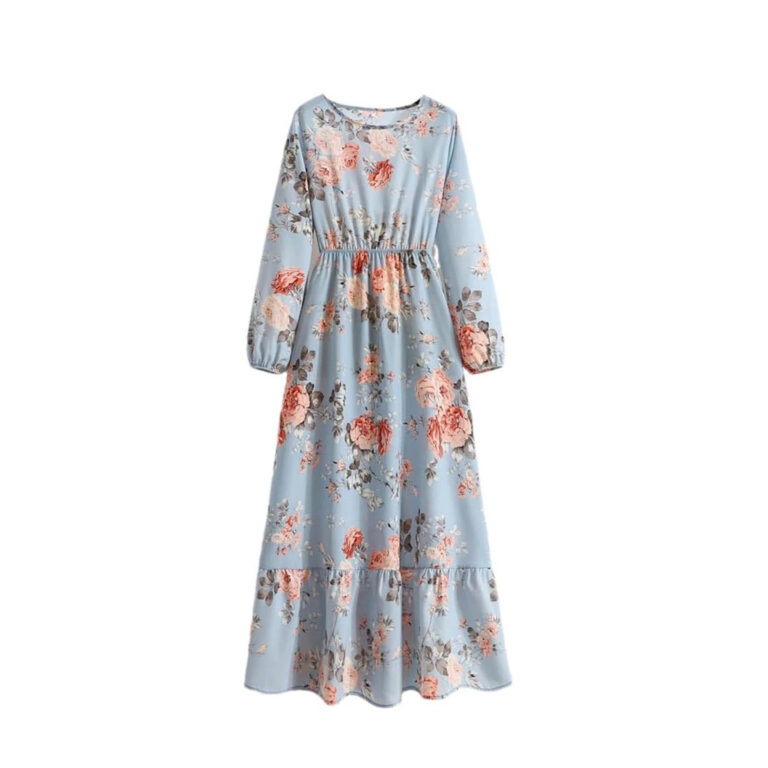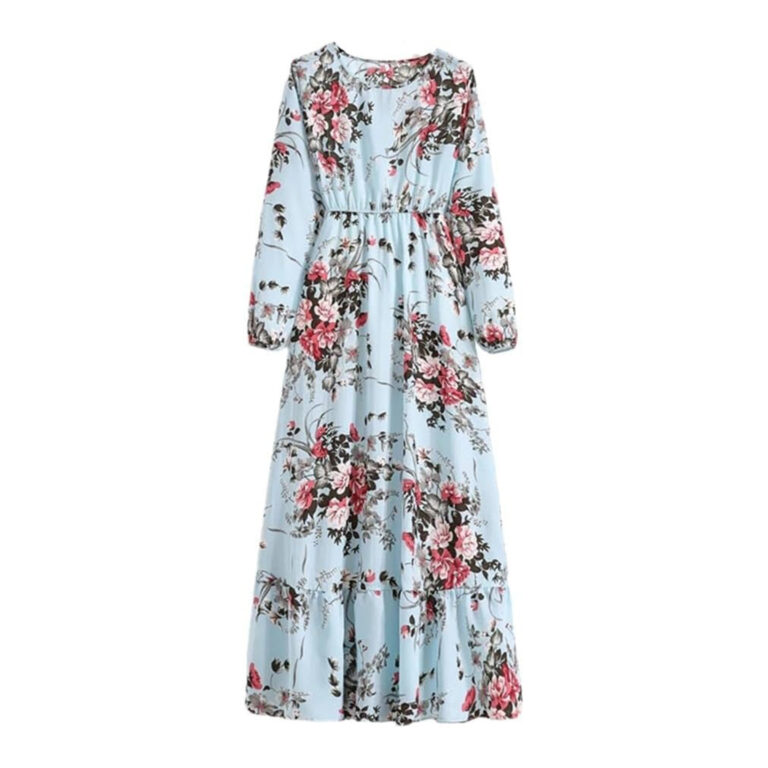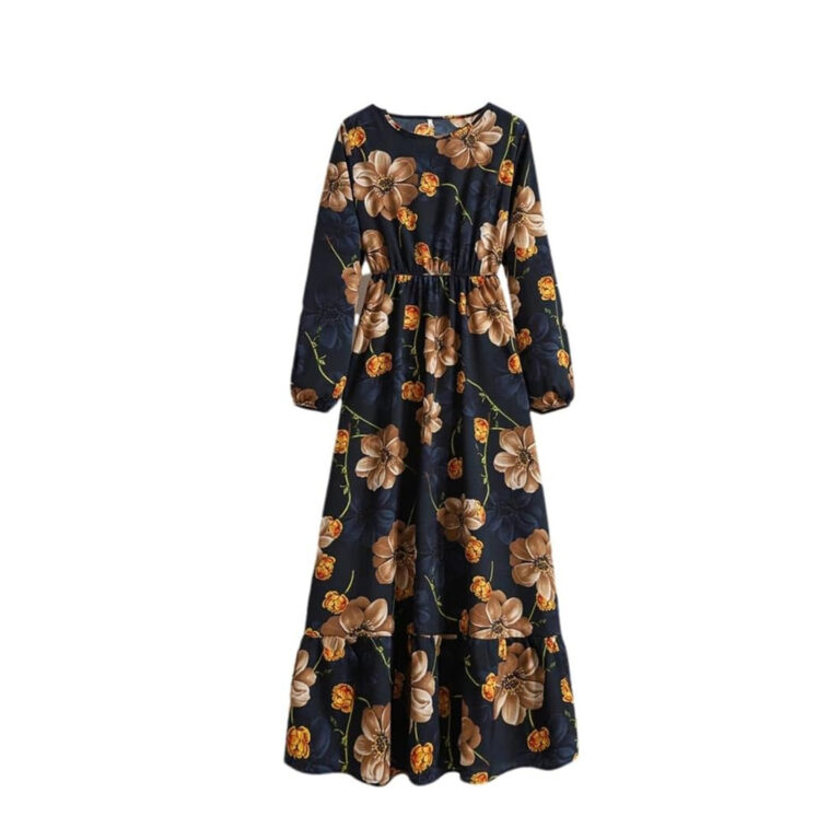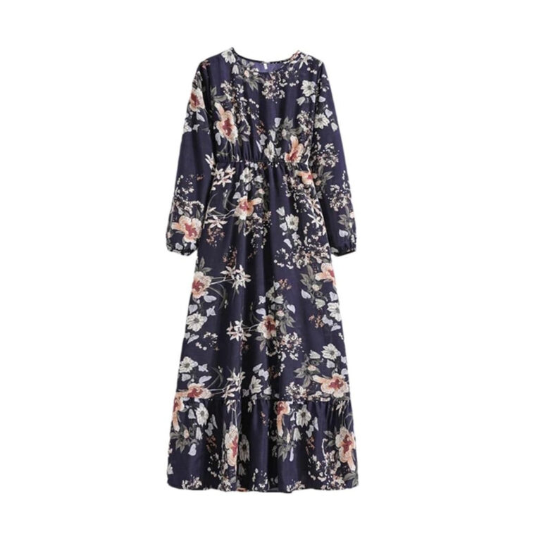 Women’s Spring Summer Floral Print Dress Round Neck Long Sleeve Maxi Party Dresses