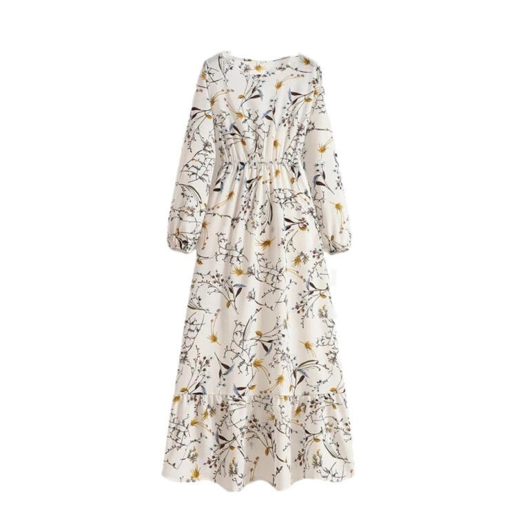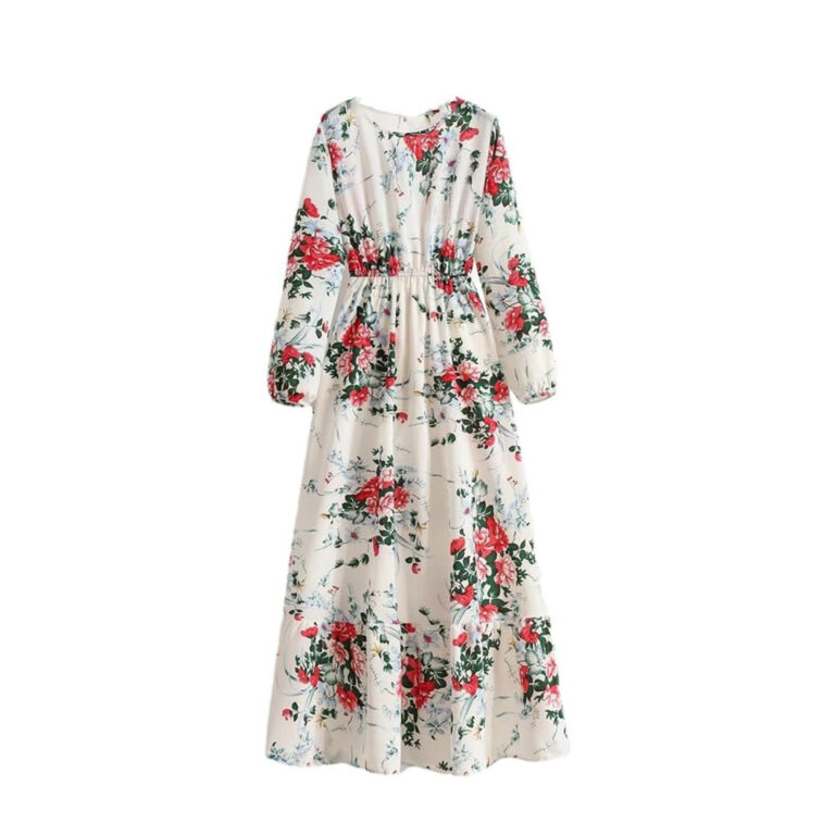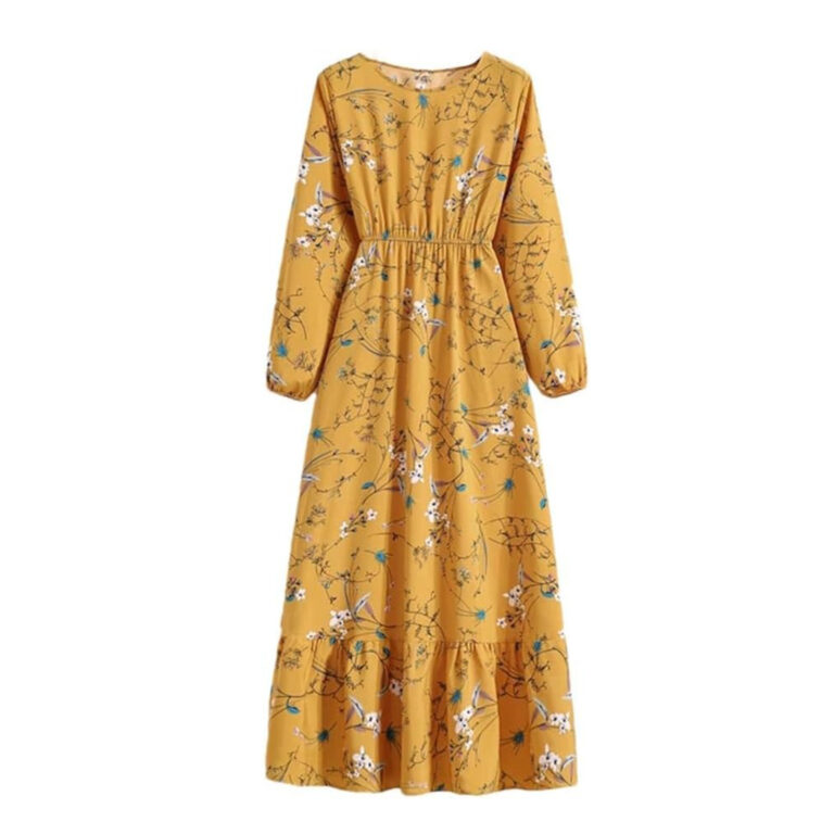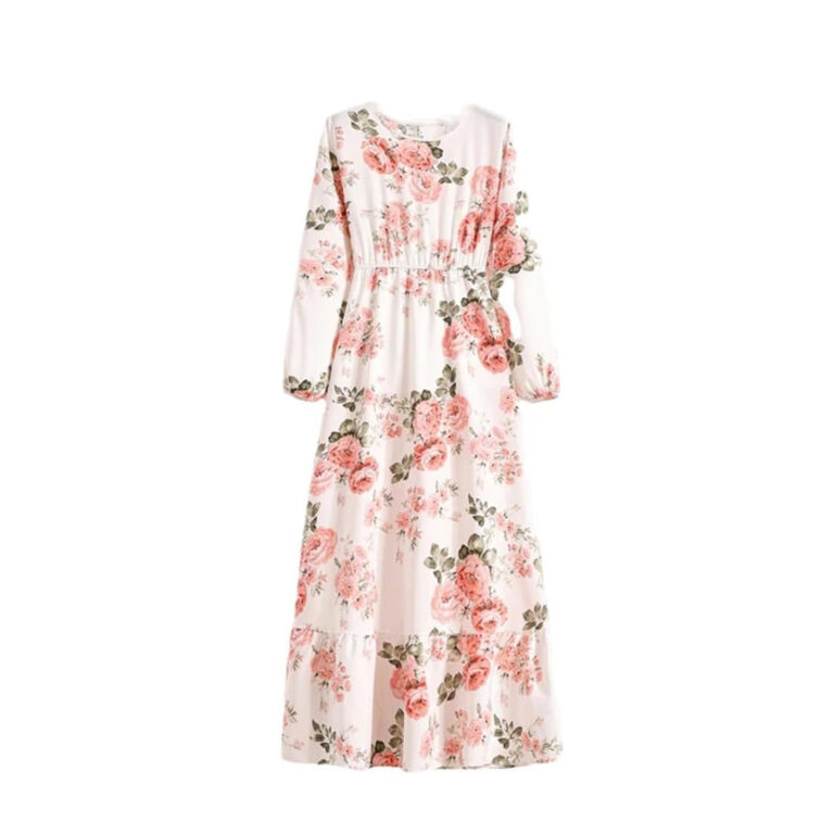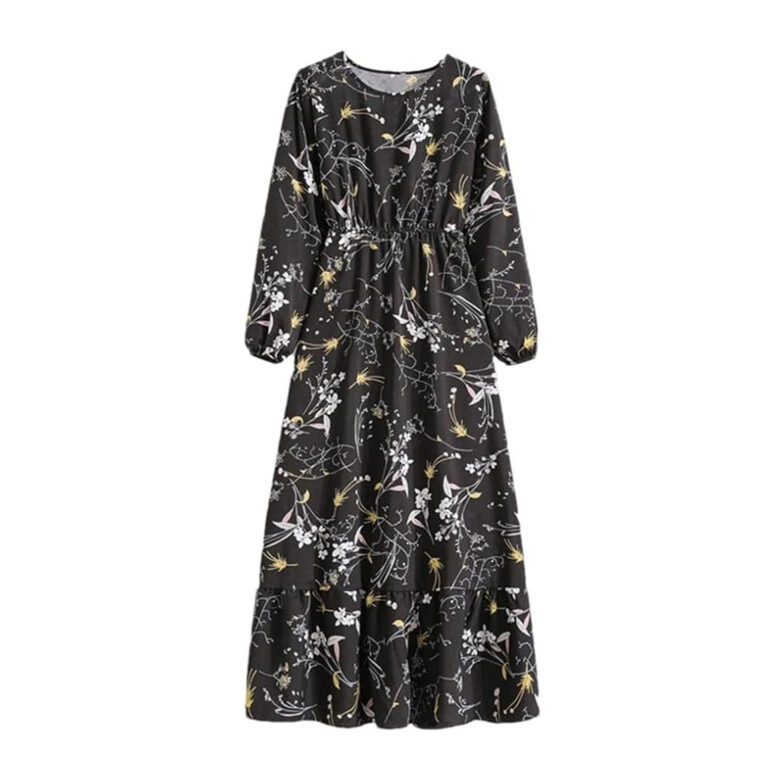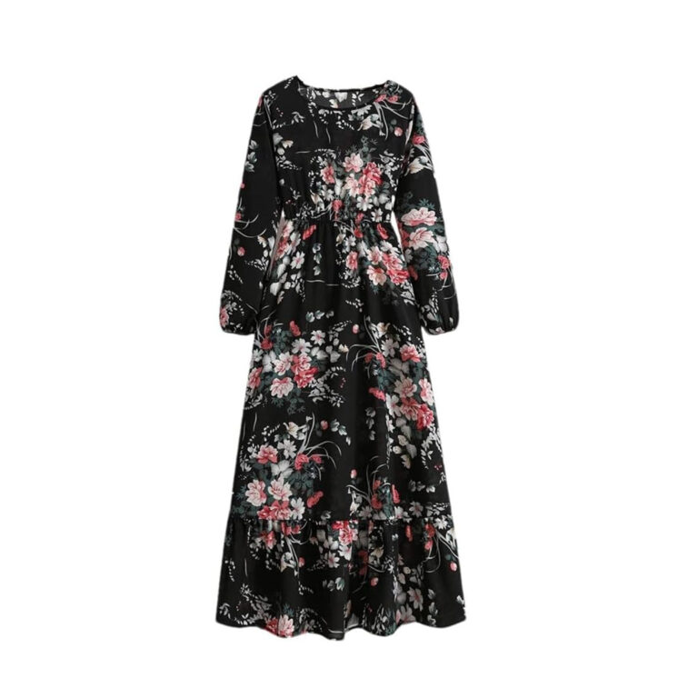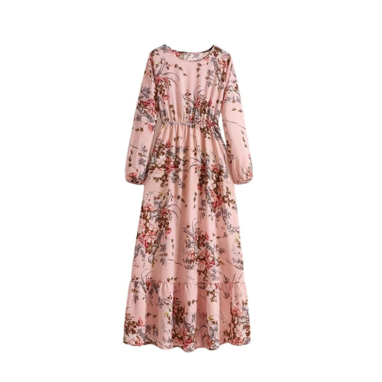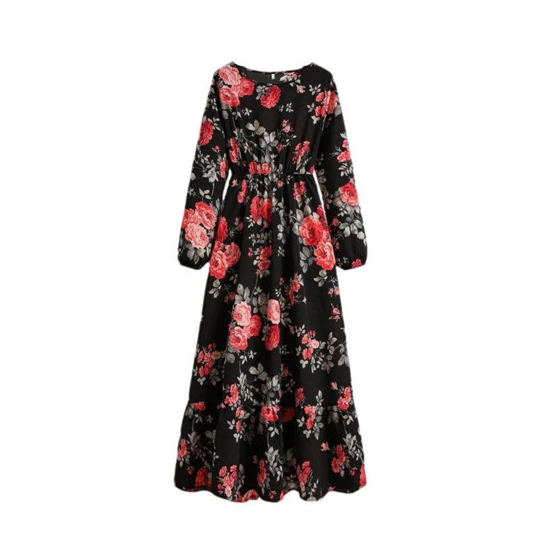 Women’s Spring Summer Floral Print Dress Round Neck Long Sleeve Maxi Party Dresses