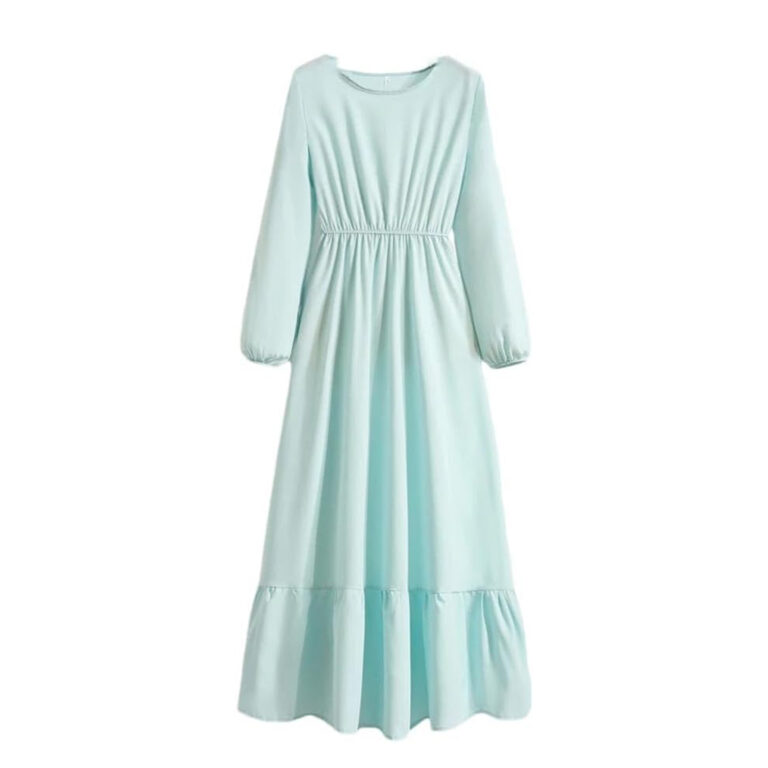 Women’s Plain Square Neck Short Sleeve Flare Peplum Dress, High Waist Elegant Casual Dress – light blue