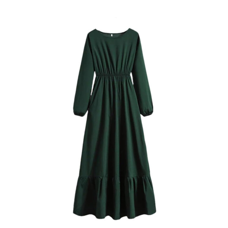 Women’s Plain Square Neck Short Sleeve Flare Peplum Dress, High Waist Elegant Casual Dress – dark green