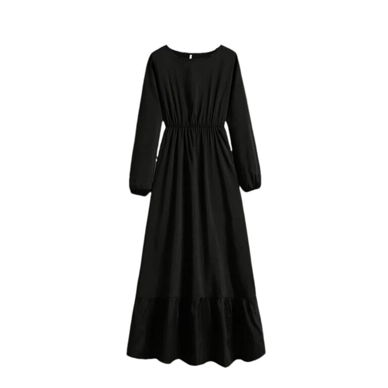 Women’s Plain Square Neck Short Sleeve Flare Peplum Dress, High Waist Elegant Casual Dress – black