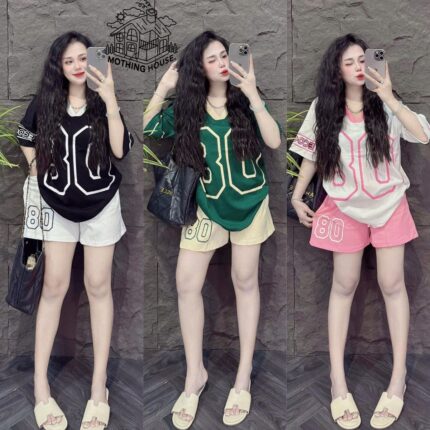 Women’s Black Oversized Number Print T-Shirt & Shorts Two-Piece Set