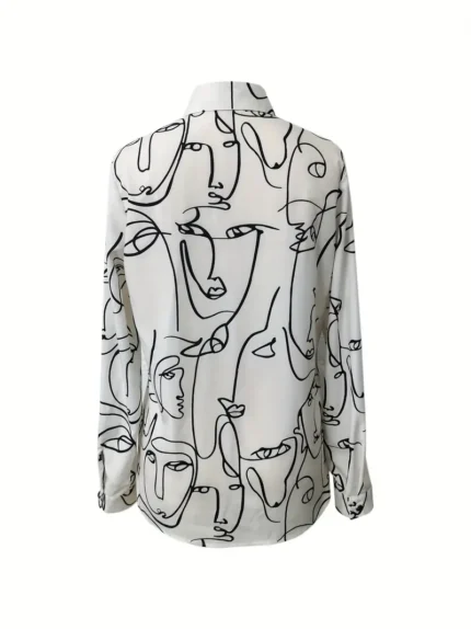 Women’S Elegant Geometric Print Button-Up Shirt – Long Sleeve POLO Collar, Lightweight Polyester, Perfect for Spring, Summer & Fall, Vintage-Inspired Design with Bold Abstract Patterns