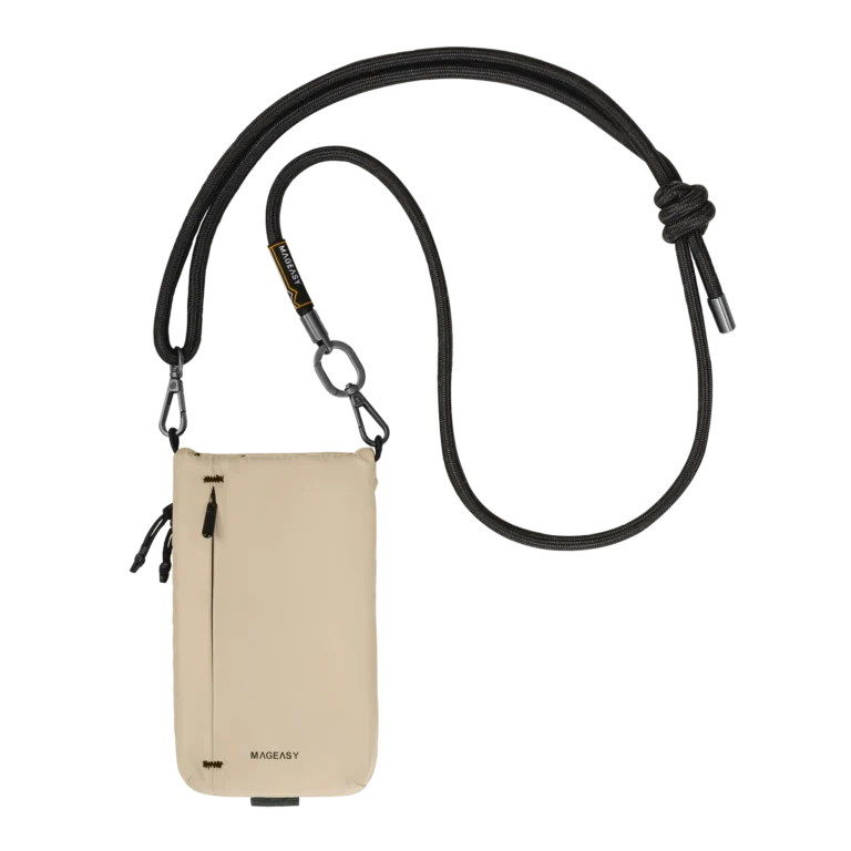 Mageasy Phone Sacoche Utility Crossbody Bag + Strap Phone Lanyard 8.3mm- Sand Beige + Black